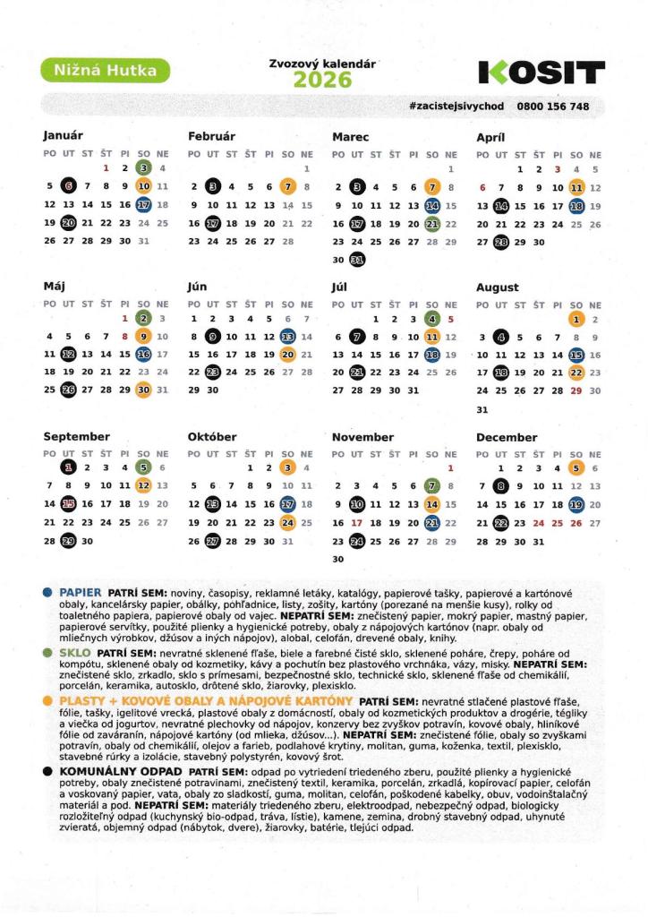 Zvozový kalendár 2026